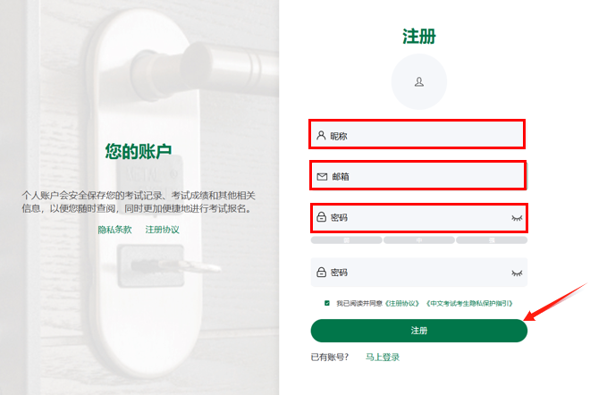 没有账号的考生请点击登录下面的马上注册,阅读并同意《注册协议》。