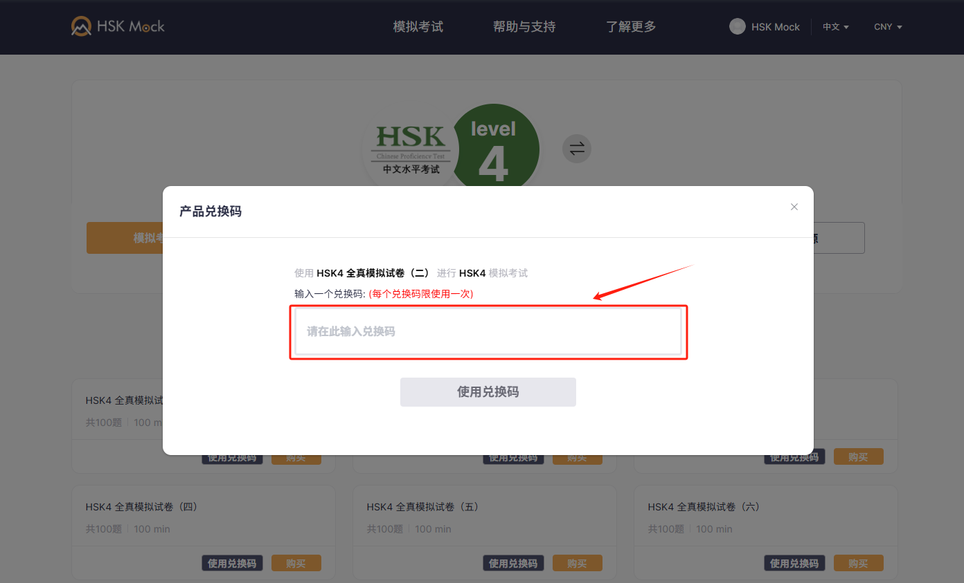 您可以通过电脑网页或手机/平板App两种方式使用HSK Mock兑换码。